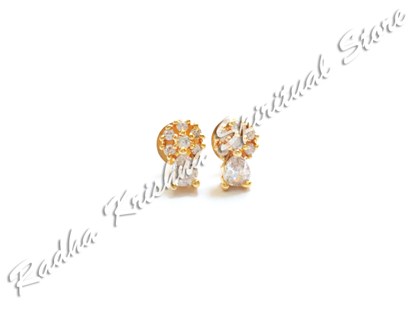 Diese ausgefallenen Stein-Ohrstecker im Anhänger-Stil in zartem Blumen- und Tropfenform-Design sind von weißer Farbe in Ohrsteckerformen in 1,4 cm Höhe. Es ist für alle Gottheiten geschmückt. Diese sind wie menschliche Nieten, die am Ende einen Stiel und einen Verschluss haben, damit sie ohne Wachs an Gottheiten geschmückt werden können.