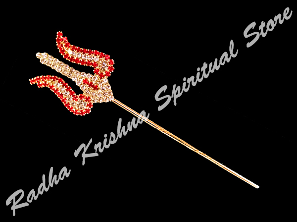 Dieses 2-Zoll heiligen Dreizack (Trishul) ist ideal für Lord Shiva und Durga Mata Gottheiten. Es ist stilvoll in Handarbeit und mit roten, weißen Steinarbeiten verziert.