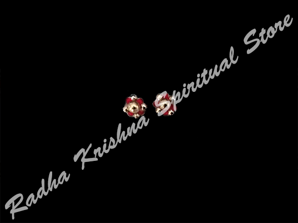 This fancy bead earrings are of red and golden color in floral shapes in 5 mm size. It is adorned to Shri Karn of Thakurji / Laalan / Ladoogopal and other deities. It is generally used as a Pushtimarg Shringaar accessory.
