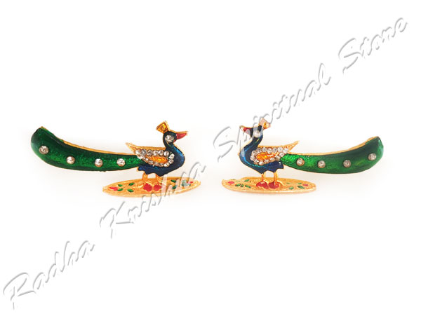This Meenakari mini peacock Mayura deity God Toy pair is fit for all small deity altars. It is of 2 inch width and 1 inch height size. It is made in metal with meenakari color work. It comes as a pair.