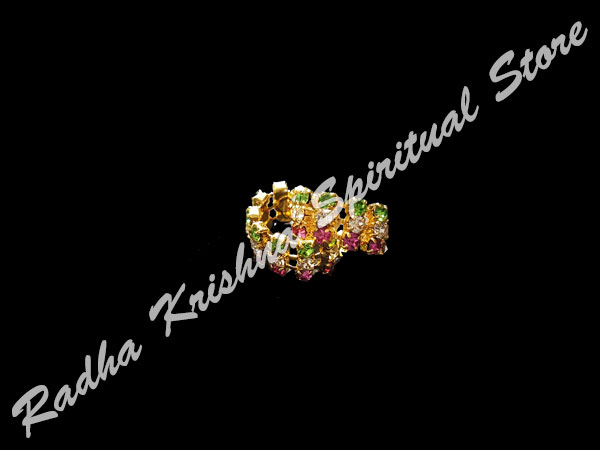 Ornaments made of artificial stones specially engraved in metal. These armlets is made in pink, light green and white stones well fit for deity of 4 inch height.